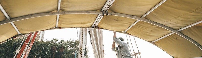 Quanto às lonas externas, algumas das aplicações mais comuns são toldos e acessórios de camping, como veremos a seguir: