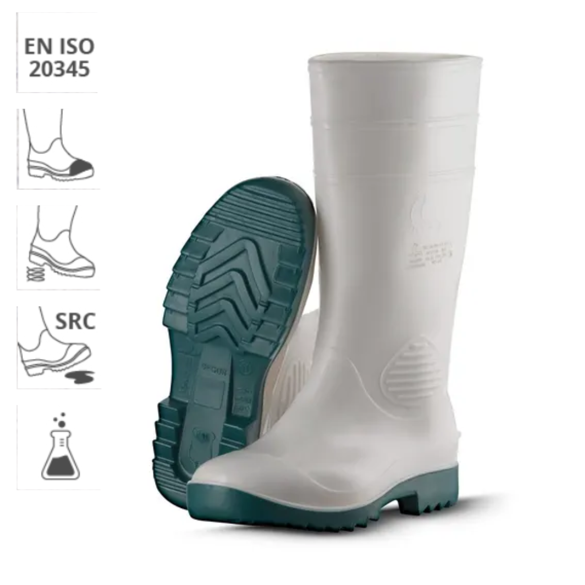 Nós explicamos. É uma bota de chuva ideal para trabalhar em água, gelo ou em ambientes húmidos sem risco excessivo de gorduras ou óleos. Por exemplo, um transportador de produtos congelados que tem que entrar e sair e com um risco aparente de que uma caixa possa cair em seus pés. Seu uniforme de trabalho, provavelmente em tons de branco, combinará perfeitamente com botas brancas.