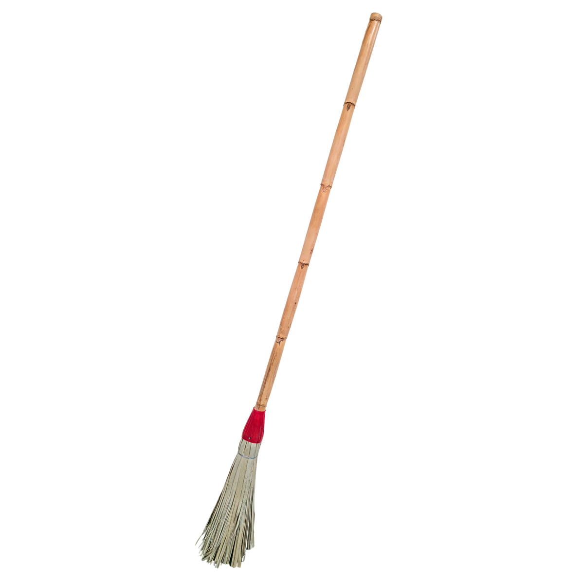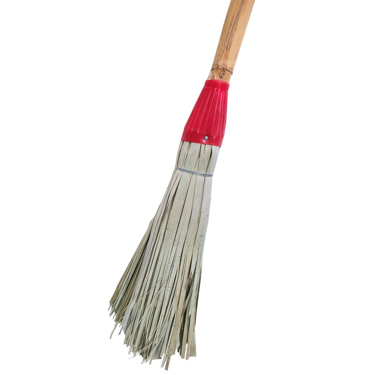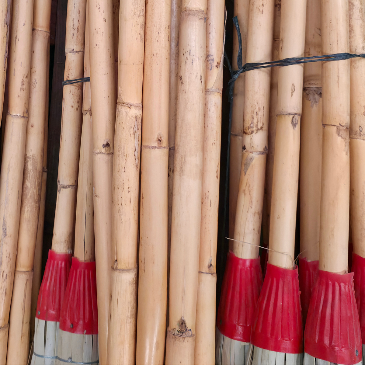 Vassouras feitas com folhas de palmeira e cabo de cana resistente e forte para uma boa aderência.